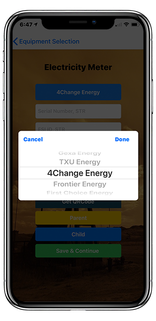 Select the equipment such as electricity meter and/or pump and populate the its information
